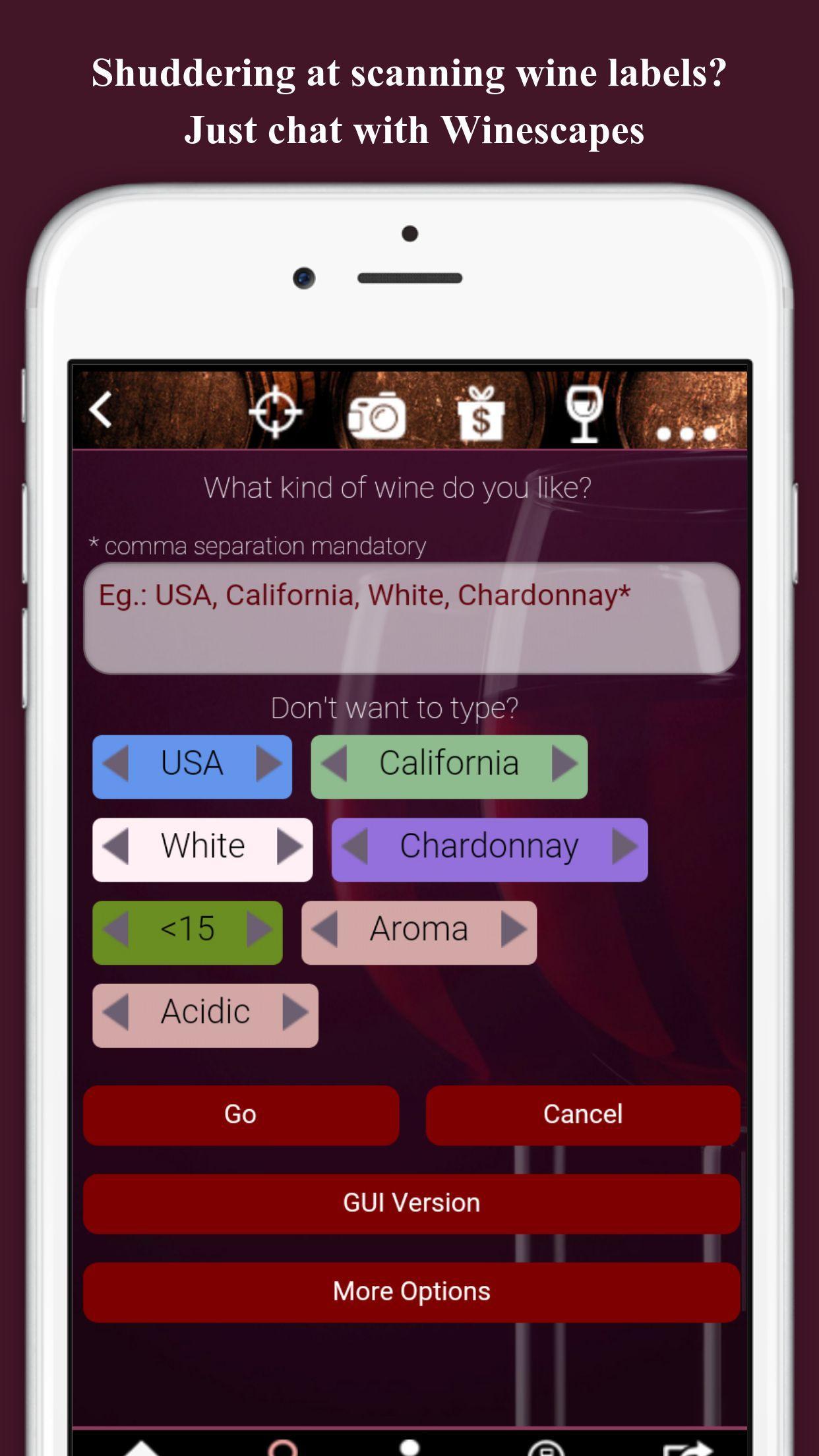 فزع من عدد لا يحصى من النبيذ المعروض؟ مجرد الدردشة مع Winescapes ! لا ملصقات المسح ، لا