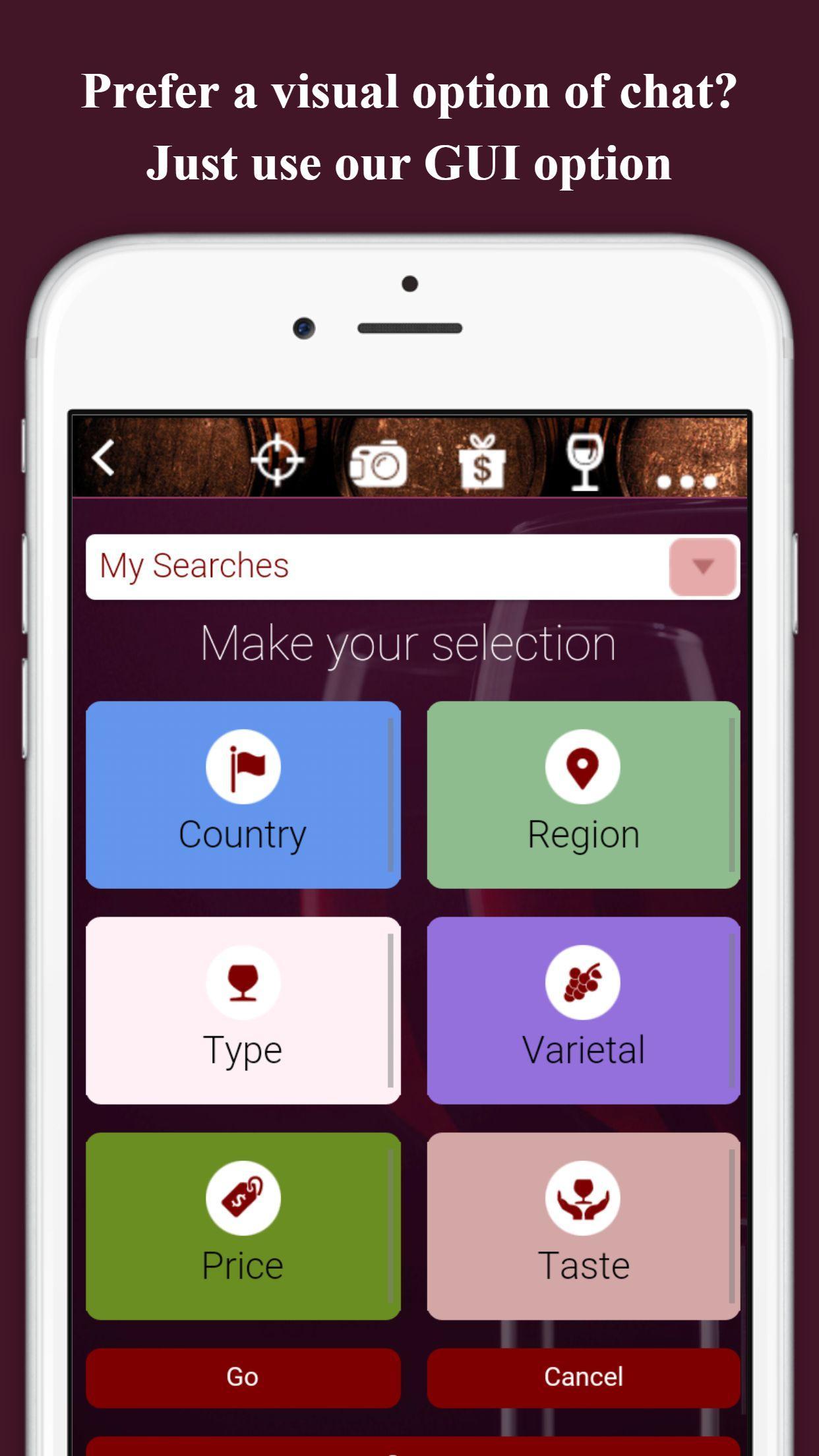 * اختر Top Wines للشراء باستخدام إصدار بحث واجهة المستخدم الرسومية من WS الدردشة - حدد ، اذهب ، شراء.